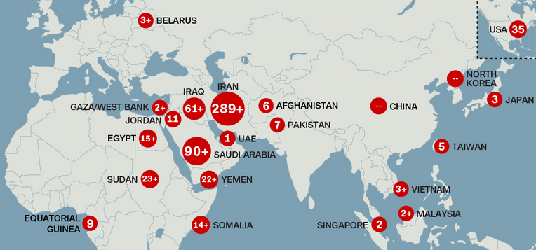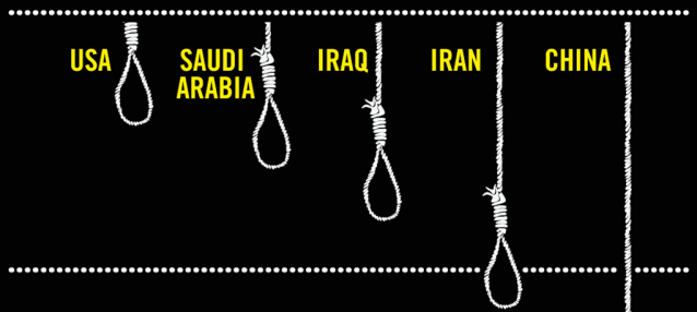 La Chine demeure le plus grand bourreau en matière d’exécution de la peine capital, suivie par l’Iran, qui a commis 289 meurtres publics. L’Organisation a dit qu’au moins 454 exécutions ont été réalisées dans le secret par les autorités iraniennes. L’Arabie Saoudite a effectué 90 exécutions, suivi par l’Irak, qui a tué 61 personnes condamnées à mort et les États-Unis, qui ont exécuté 35 êtres humains.