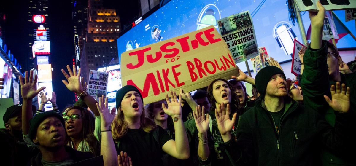 Les protestations ont gagné toute la Fédération au début de décembre, suite à la mort d’un autre homme de peau noire encore désarmé, Eric Garner. Les manifestations ont redoublé d’ampleur lorsque les grands jurys ont décidé de ne pas donné suite au procès des policiers accusés … des manifestants ont envahi les rues de New York à Berkeley en Californie …