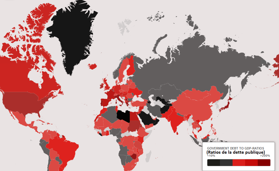Depuis 2007, la dette publique a augmenté de 25 milliards de dollars. Selon les experts du « McKinsey Global Institute » (MGI), la dette publique va continuer à augmenter dans de nombreux pays, compte tenu des fondamentaux économiques actuels. Une partie de cette dette a été contractée -avec la bénédiction des dirigeants des grandes institutions- pour financer les sauvetages et les programmes de relance économique. La dette a également augmenté en raison de la récession et la faiblesse de la reprise. Pour les pays les plus lourdement endettés, le démarrage du processus de désendettement exigerait une croissance quasi miraculeuse du PIB ou des ajustements budgétaires radicales.